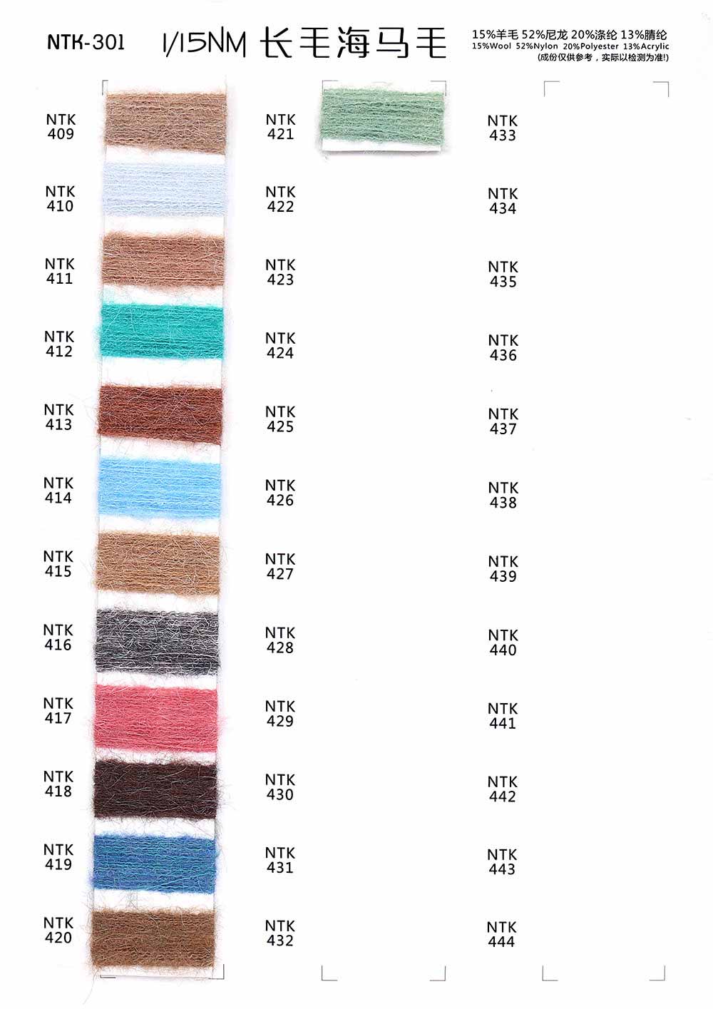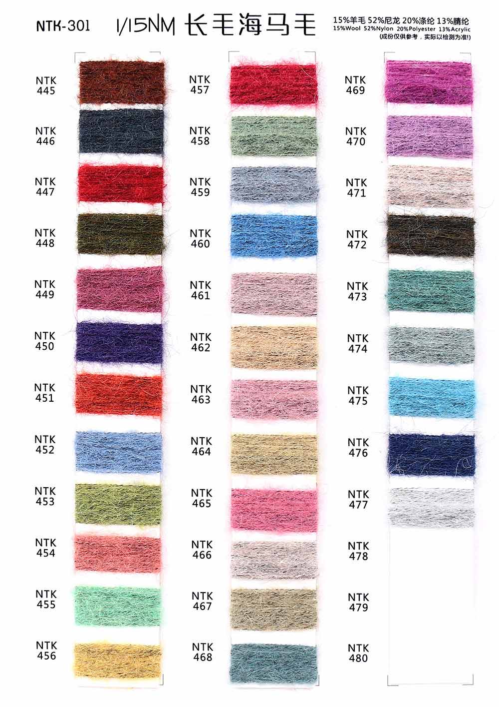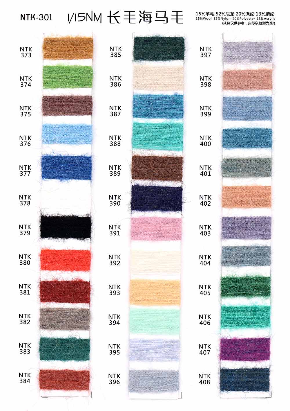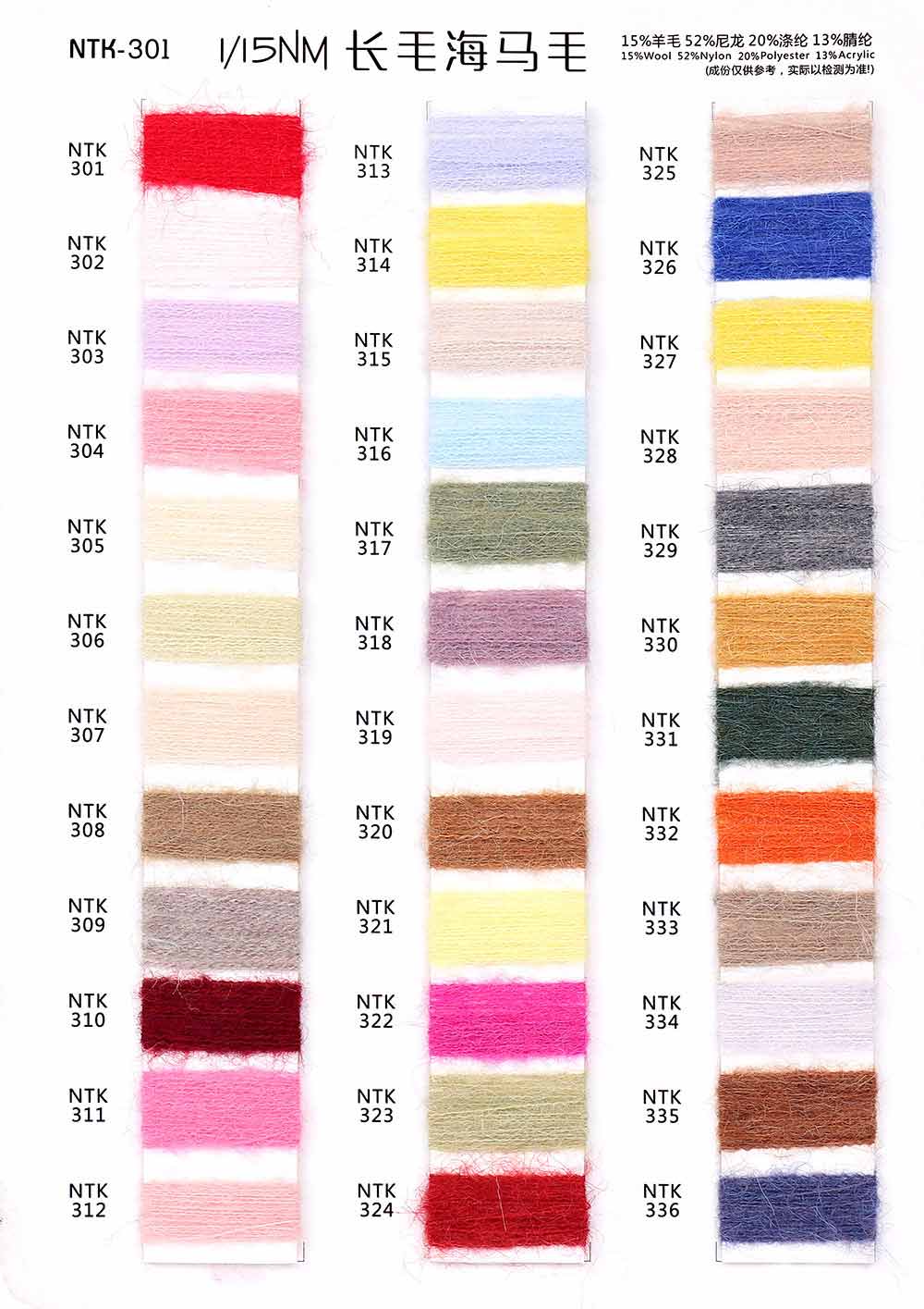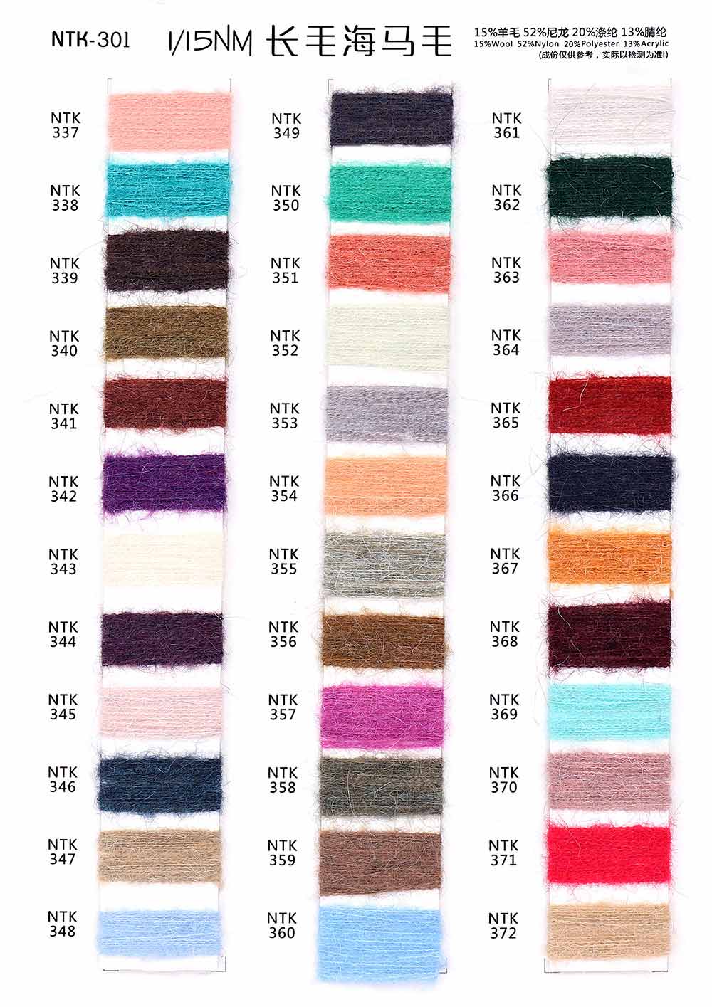 15%羊毛Wool 52%尼龙Nylon 20%涤纶Polyester 13%腈纶Acrylic